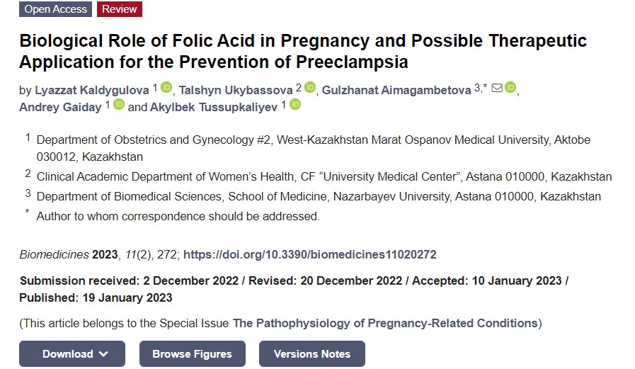 [1] Kaldygulova L، Ukybassova T، Aimagambetova جی، وغیرہ۔ حمل اور ممکنہ علاج میں فولک ایسڈ کا حیاتیاتی کردار پری لیمپسیا کی روک تھام کے لیے درخواست۔ بائیو میڈیسن، 2023، 11(2): 272۔https://doi.org/10.3390/biomedicines11020272