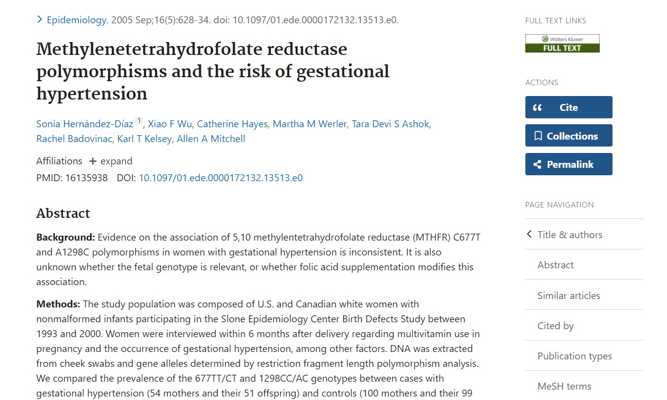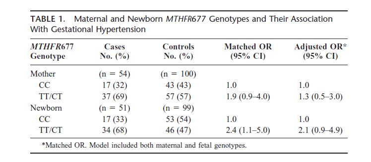 Hayes C، et al.Methylenetetrahydrofolate Reductase Polymorphisms اور
