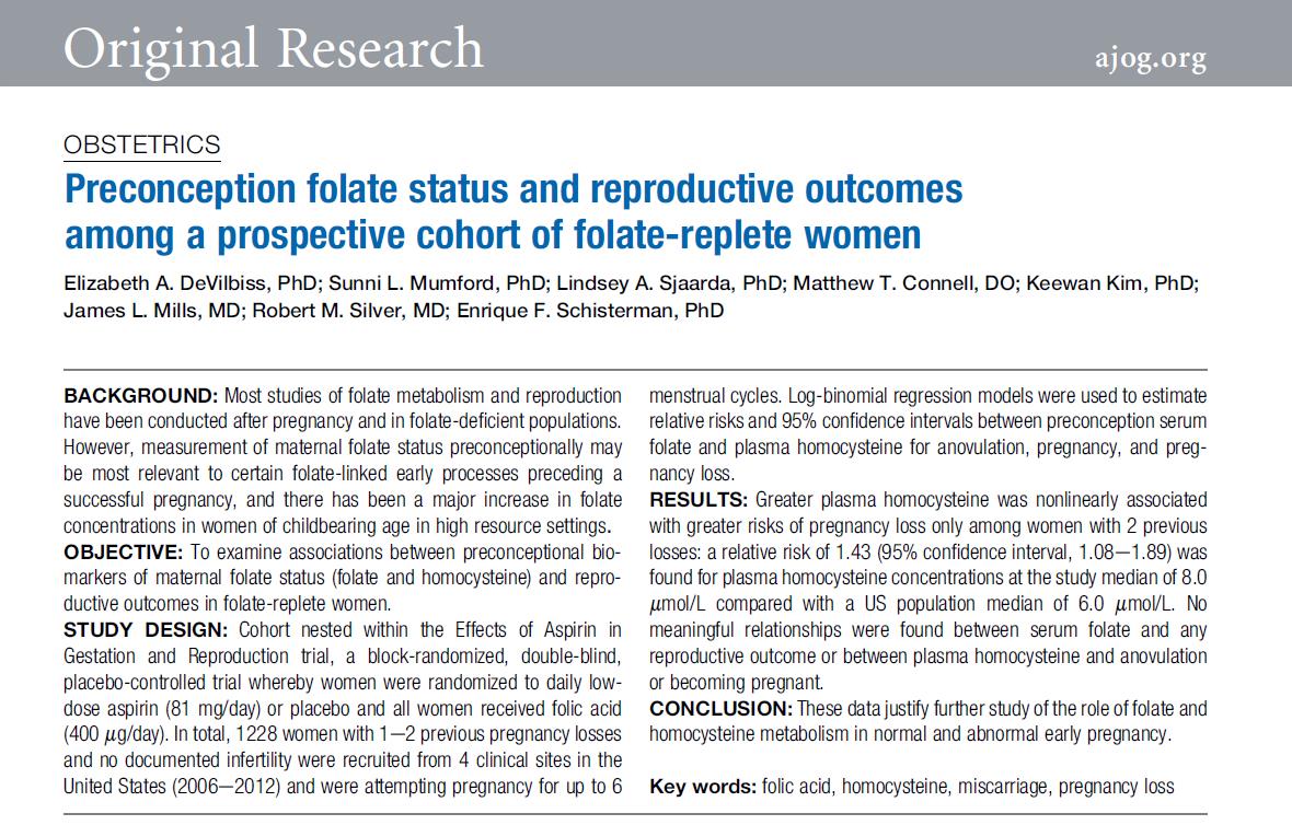 یہ نتائج ظاہر کرتے ہیں کہ فولک ایسڈ کی مناسب مقدار کے ساتھ،حمل کے نتائج پر منحصر ہے فولیٹ میٹابولک صلاحیت پر، اکیلے سیرم کی سطح نہیں۔
